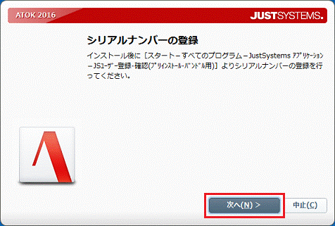 「はい」ボタンをクリックします。 - 「「ATOK」のインストール」と表示されます。