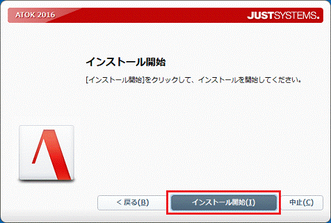 - 「ATOK 2016のインストール」ボタンをクリックします。