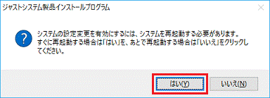 「はい」ボタンをクリックし、パソコンを再起動します。