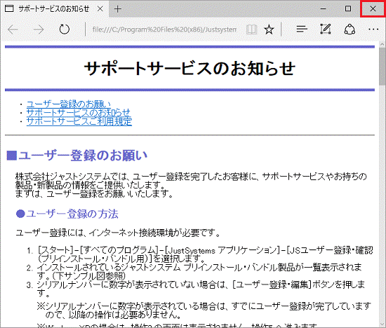 内容をよくお読みいただき、「×」ボタンをクリックして閉じます。