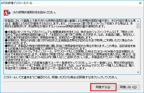 内容をよく読み、同意する場合は「同意する」ボタンをクリックします。