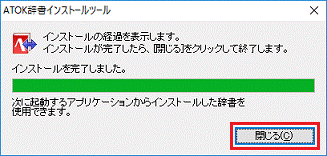 - 「「ATOK」のインストールを実行中です。」と表示されます。