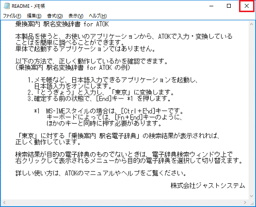 - 「乗換案内 駅名変換辞書 for ATOK のインストール」ボタンをクリックします。