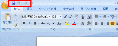 クイック アクセス ツールバーとは、購入時の設定で「Office」ボタンの隣にある領域です。