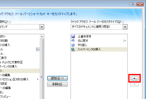 次の手順で、Word 2007のクイック アクセス ツールバーにコマンドを追加します。