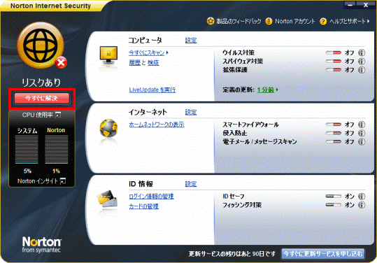 画面左上の「今すぐに解決」ボタンをクリックします。