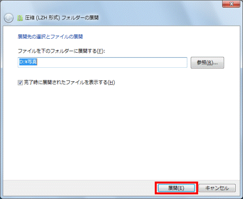 - 「圧縮(LZH形式)フォルダーの展開」が表示されます。