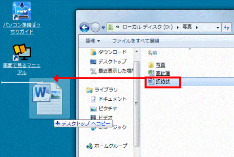 目的の場所までマウスポインターを動かしたら、マウスのボタンから指を離します。