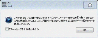 このタイトルはマウス操作およびホットキー(スペースキーで一時停止やEndキーで停止する等の機能)に対応していない可能性があります。操作するには矢印キーとEnterキーを使用してください。