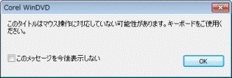 なお、Blu-ray Discのタイトルが、マウスやホットキーの操作に対応していない場合は、ディスクをセットしたときに、次のメッセージが表示されることがあります。
