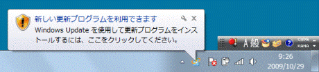 [Windows 7] 通知領域に「新しい更新プログラムを利用できます」と表示されます。