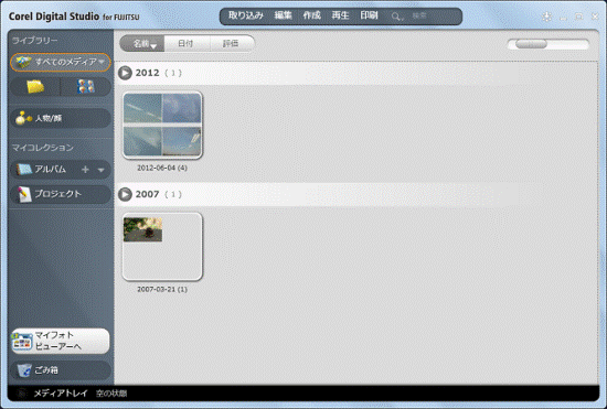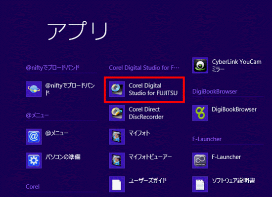 - 「アップデートがあります。Microsoft Storeより、Corel Digital Studio for FUJITSUをアップデートしてください。」