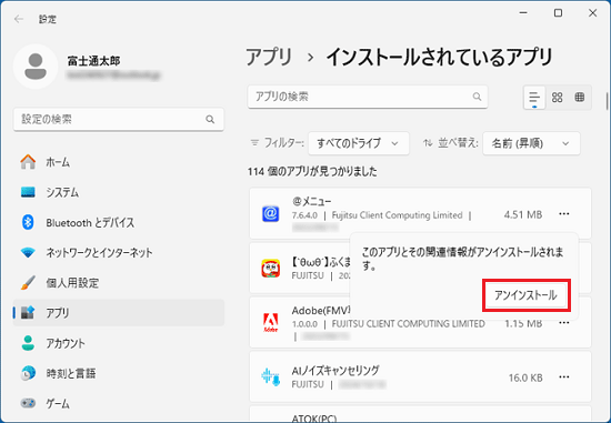 [Windows 11] アプリをアンインストール(削除)する方法を教えてください。