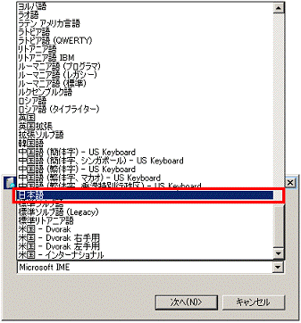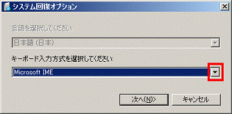 「キーボード入力方式を選択してください:」の「▼」ボタンをクリックします。