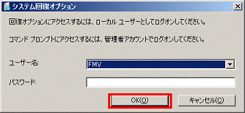 - 「回復オプションにアクセスするには、ローカルユーザーとしてログオンしてください。」と表示されます。