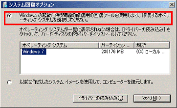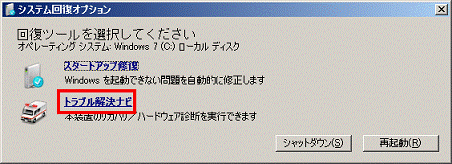 ただし、ディスクから起動しても、トラブル解決ナビにシステムの復元は表示されません。
