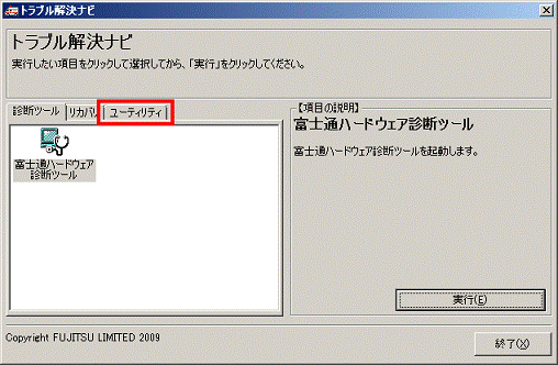 - 「トラブル解決ナビ」の「ユーティリティ」タブをクリックします。