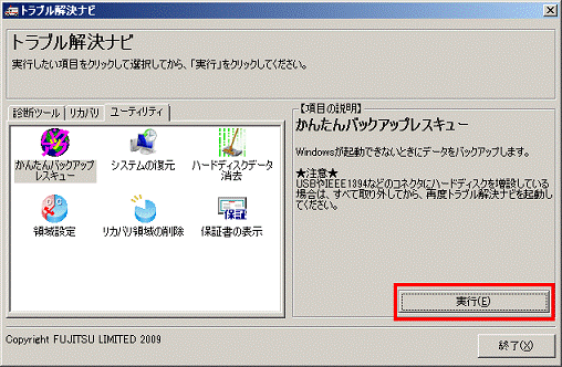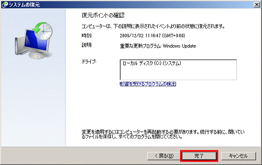 [トラブル解決ナビ] システムの復元を実行する方法を教えてください。(2009年冬モデル)
