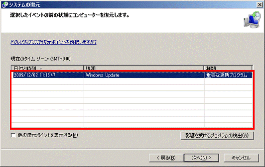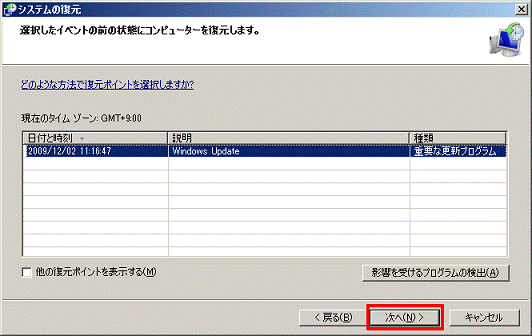 - 「選択したイベントの前の状態にコンピューターを復元します。」と表示されます。