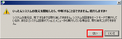 - 「いったんシステムの復元を開始したら、中断することはできません。」と表示されます。