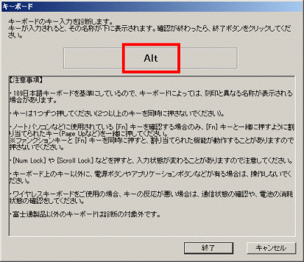 ここでは、例として、【Alt】キーが正しく入力されるかどうかを確認します。