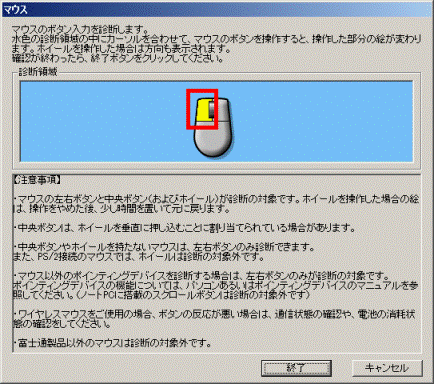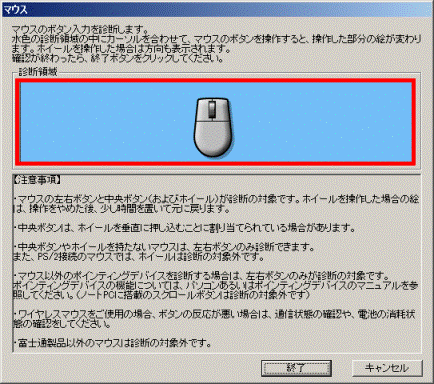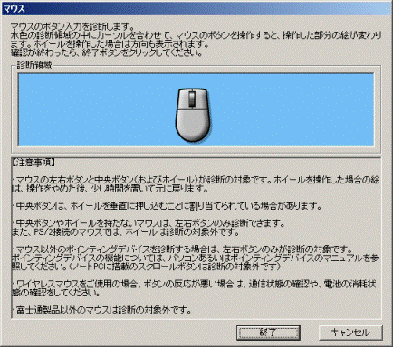 - LIFEBOOK/FMV-BIBLOに搭載しているスクロールボタンは診断の対象外です。