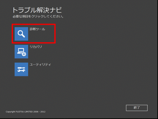 [トラブル解決ナビ] 起動する方法を教えてください。(2012年10月発表モデル〜2015年5月発表モデル) - トラブル解決ナビの「診断ツール」をクリックします。