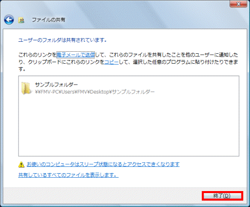 - 「ユーザーのフォルダーは共有されています。」と表示されます。