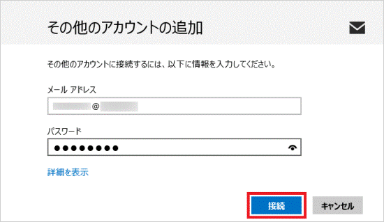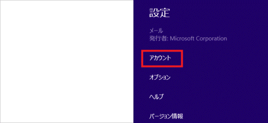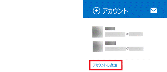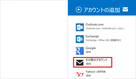 次の手順で、Windows ストア アプリのメールにプロバイダーメールを設定します。