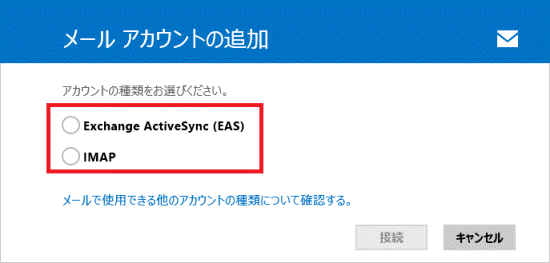 初めてメールを起動する場合は、「メールアカウントの追加」と表示されます。