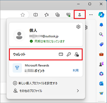 プロファイルアイコンが右上に表示されている場合は、右上のプロファイルアイコンをクリックし、プロファイルメニューを表示します。