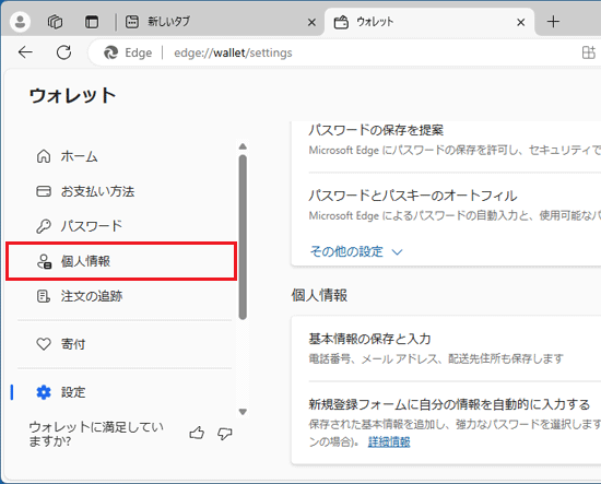 保存されたパスワードやクレジットカード、住所などの情報をまとめて削除したい場合は、次のQ&Aをご覧になり、データを削除してください。