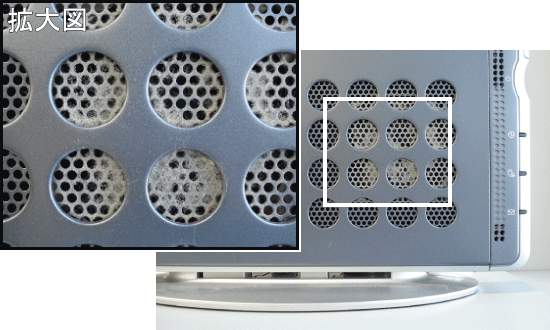 パソコンを使用していると、通風孔や吸気孔、排気孔などに、ほこりが溜まっていきます。