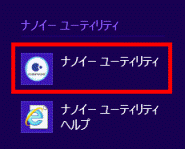 - 「スタート」ボタン→「すべてのプログラム」→「ナノイー ユーティリティ」→「ナノイー ユーティリティ」の順にクリックします。
