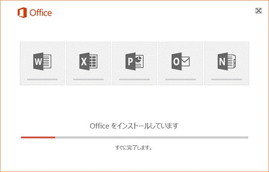 - 「Officeをお使いいただけるようになるまで、あと少しです。」と表示されます。