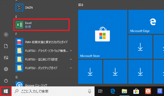 「スタート」ボタンをクリックし、すべてのアプリの一覧からOfficeのアプリ(WordやExcelなど)をクリックします。