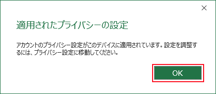 • 「適用されたプライバシーの設定」と表示された場合は、「OK」ボタンをクリックしてください。
