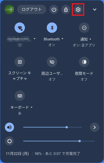 - 右下の時刻をクリックします。