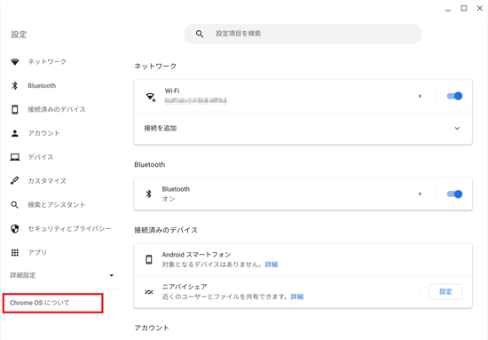 - 「Chrome OSについて」をクリックします。