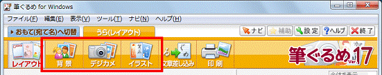 - 「背景」ボタン、「デジカメ」ボタン、または「イラスト」ボタンのいずれかをクリックします。