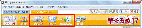 - 「デジカメ」ボタン、「イラスト」ボタン、または「文章差し込み」ボタンのいずれかをクリックします。