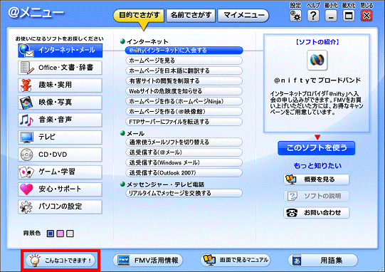 画面下部にある「こんなコトできます!」ボタンをクリックします。