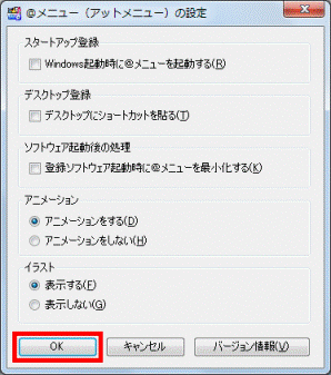 「Windows起動時に@メニューを起動する」をクリックしチェックを付けると、パソコンが起動したときに@メニューも起動します。 - デスクトップ登録