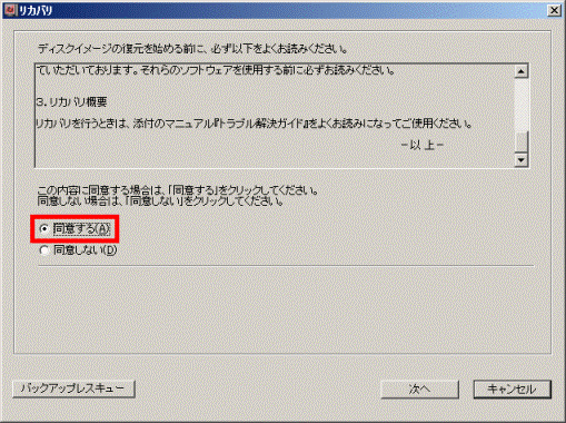 - 「ディスクイメージの復元を始める前に、必ず以下をよくお読みください。」と表示されます。