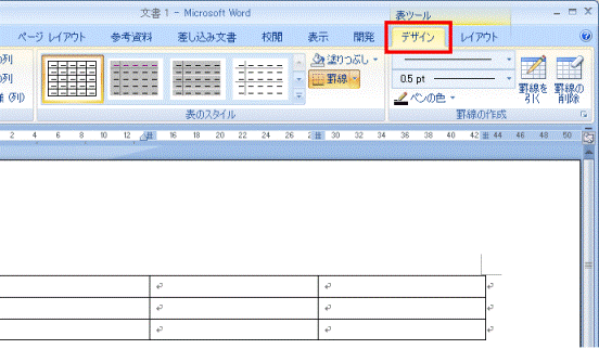 Word 2007で挿入した表の、罫線の太さや種類を変更する方法を教えてください。