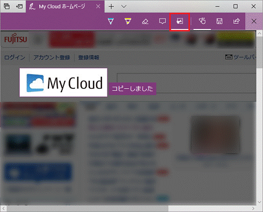 矢印のアイコン(Webノートを共有)をクリックすると、メールアプリなど、他のアプリでWeb ノートを共有できます。