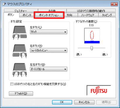 (「ポインタオプション」タブの場合) - 「OK」ボタンをクリックし、「マウスのプロパティ」を閉じます。