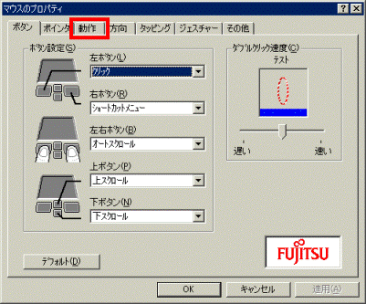 「動作」タブ、または「ポインタオプション」タブをクリックします。