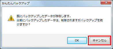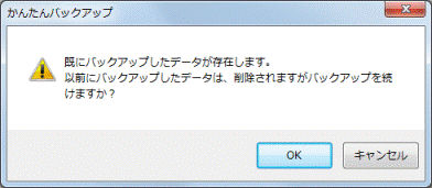 [かんたんバックアップ] バックアップを行うときに、ファイルの上書きをするメッセージが表示されます。