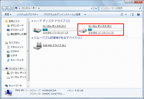 - かんたんバックアップのバックアップデータが保存されているドライブをクリックします。